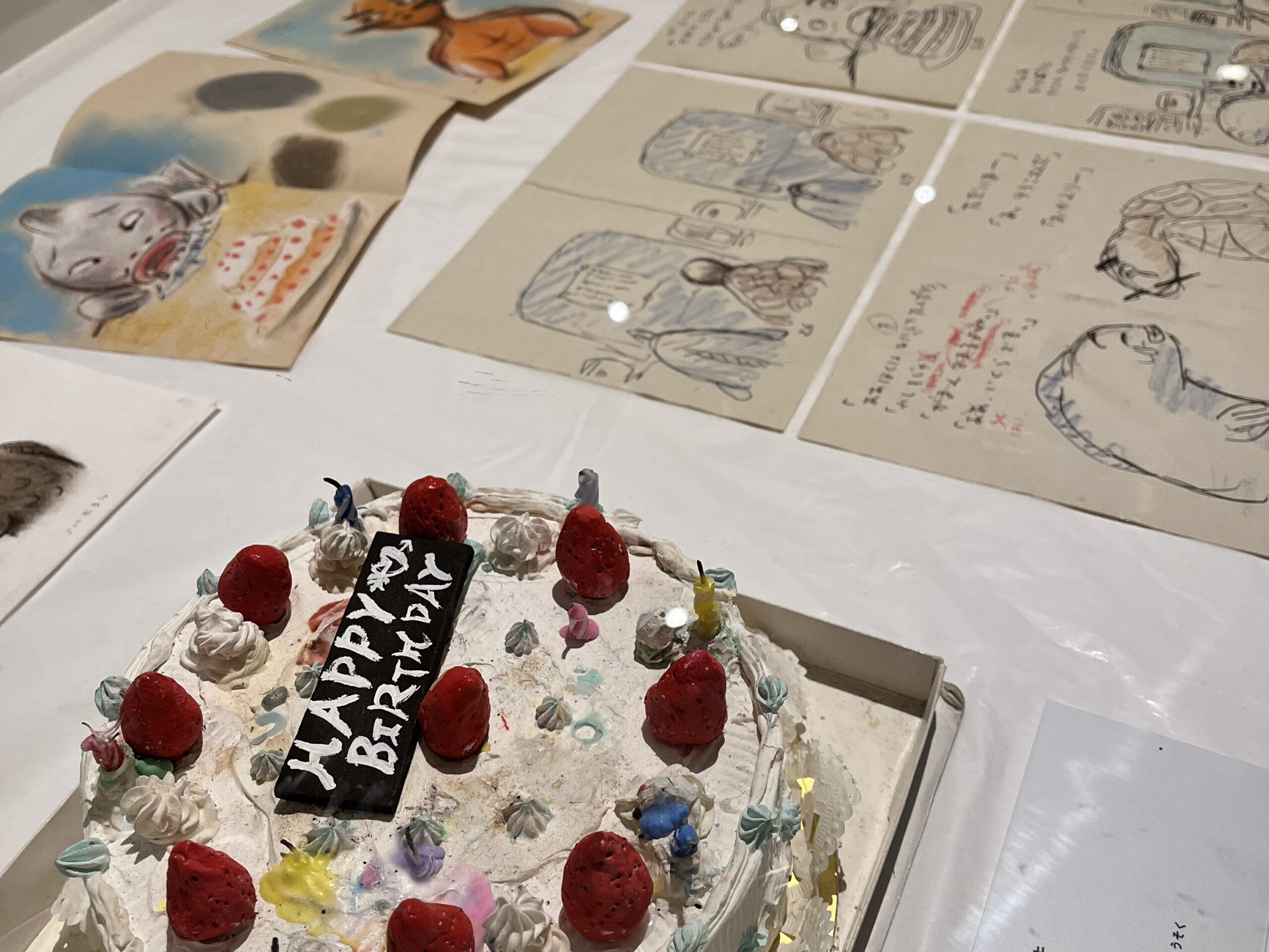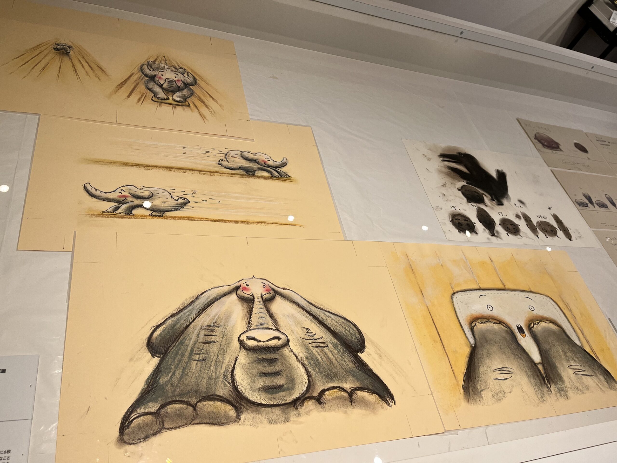 展示は主に絵本の物語とともに原画が展示されそのタッチを非常に近い距離で見ることができ、それと合わせてボツになった原画やラフスケッチ、物語が生まれるまでのエピソードなども展示されました。