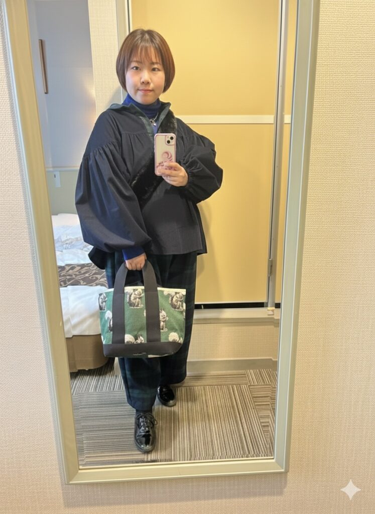 インナーにはユニクロのウールニットを合わせて晩秋の肌寒さにちょうど良いコーデでした。